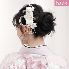 大きな白の髪飾りが顔周りを明るい印象に。透明感もア~ップ!