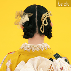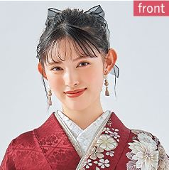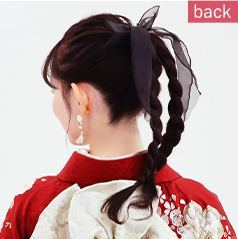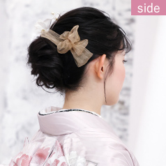 - 両サイドに違う髪飾りを着けてイメージをチェンジ。シアー感のあるリボンがおしゃれ。